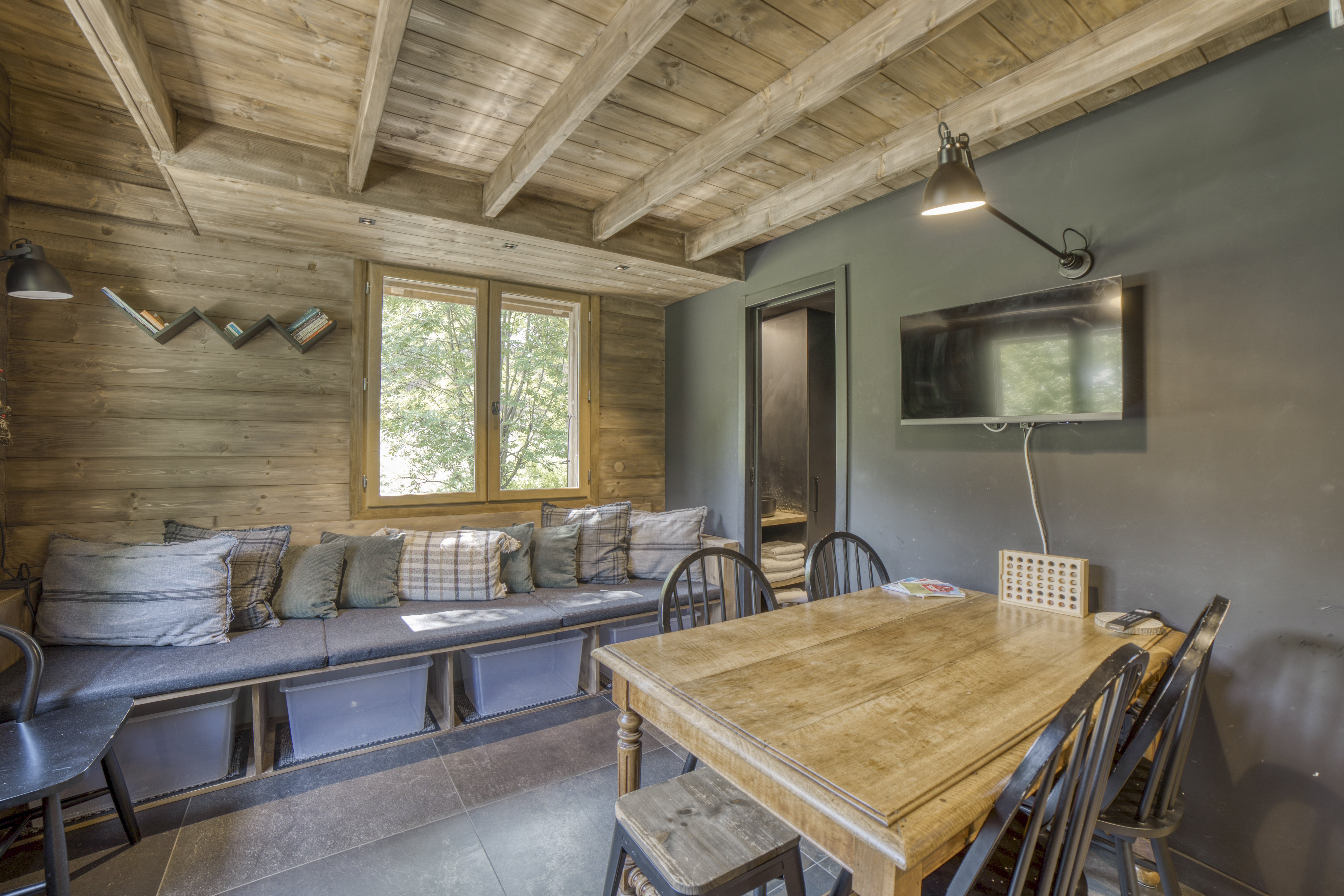 Rez-de-chaussée : salon, salle à manger, cuisine équipée (four, plaques, réfrigérateurs, lave-vaisselle, machine à café, etc.), 1 chambre master avec salle de bain privative, 1 salle de douche, 1 WC indépendant. À l’étage : 1 chambre triple avec TV. Extérieurs : terrasse avec mobilier et transats, barbecue (printemps/été), jardin, 2 places de parking privées. Nombreux équipements : cuisine équipée, TV, réfrigérateur, wifi, lave-linge, sèche-cheveux, appareils à raclette, jardin/terrasse, animaux acceptés.