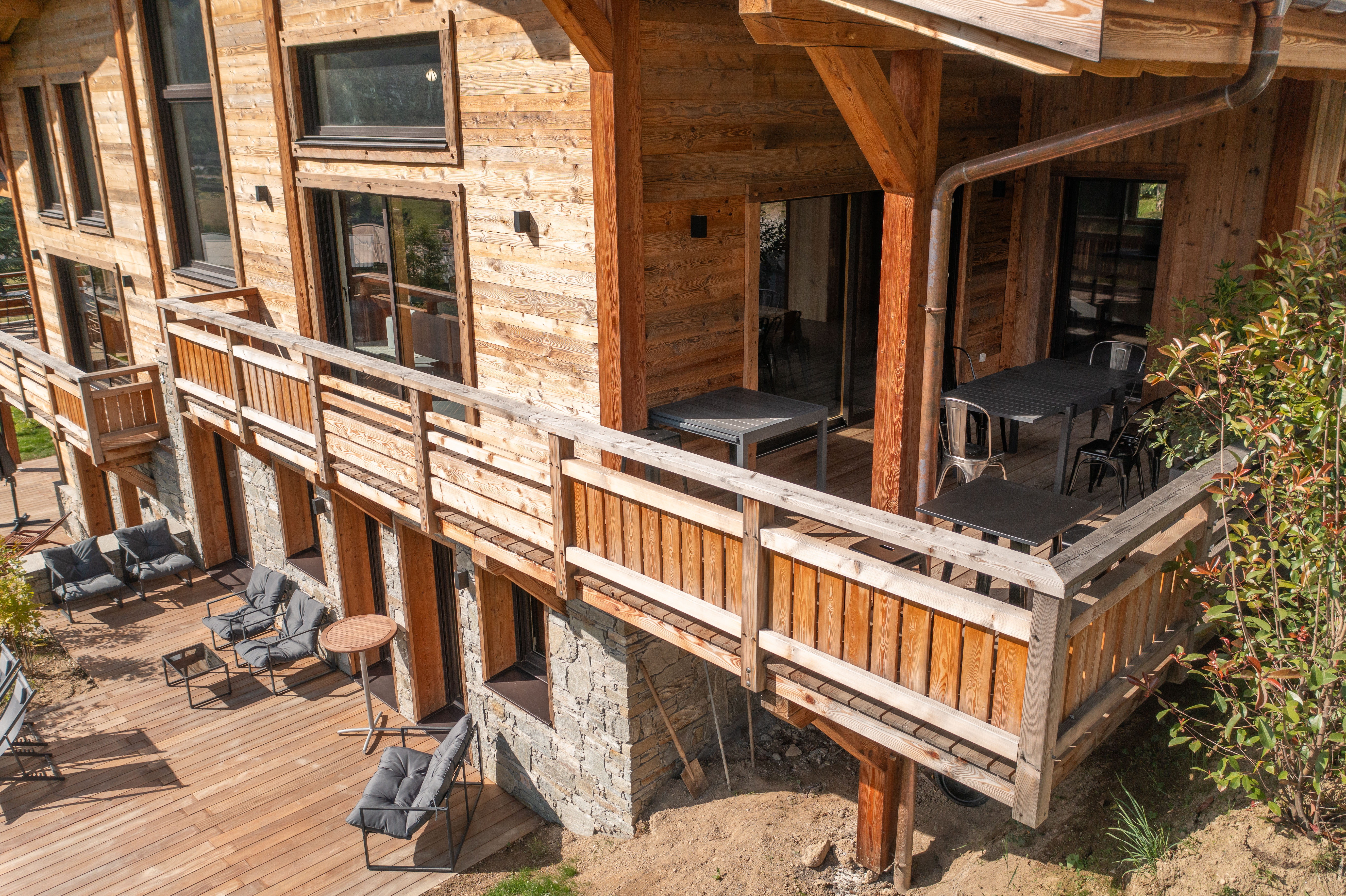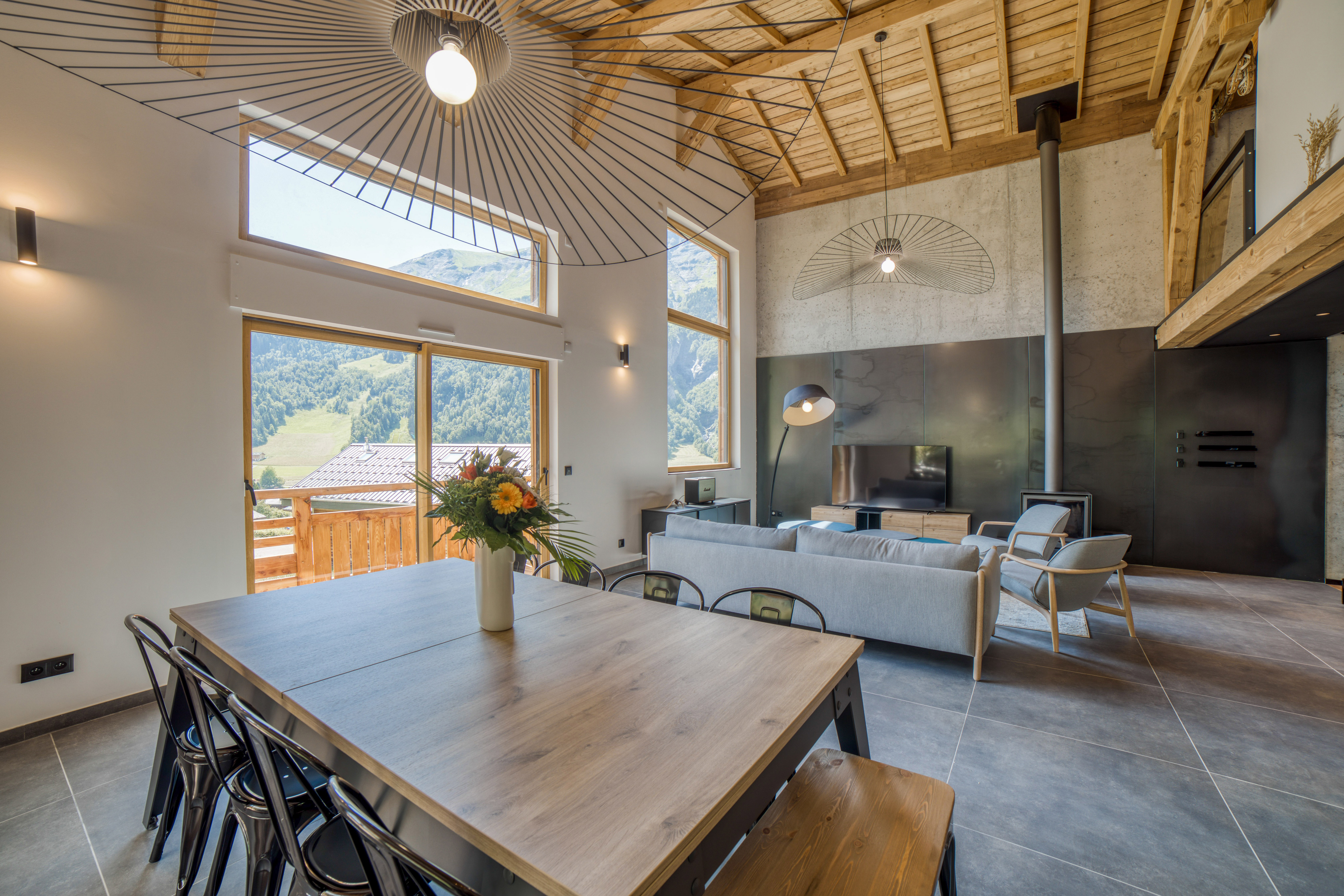 Chalet mitoyen d'exception de 200 m² aux Contamines-Montjoie, idéal pour 14 voyageurs, 5 chambres et jacuzzi avec vue panoramique.