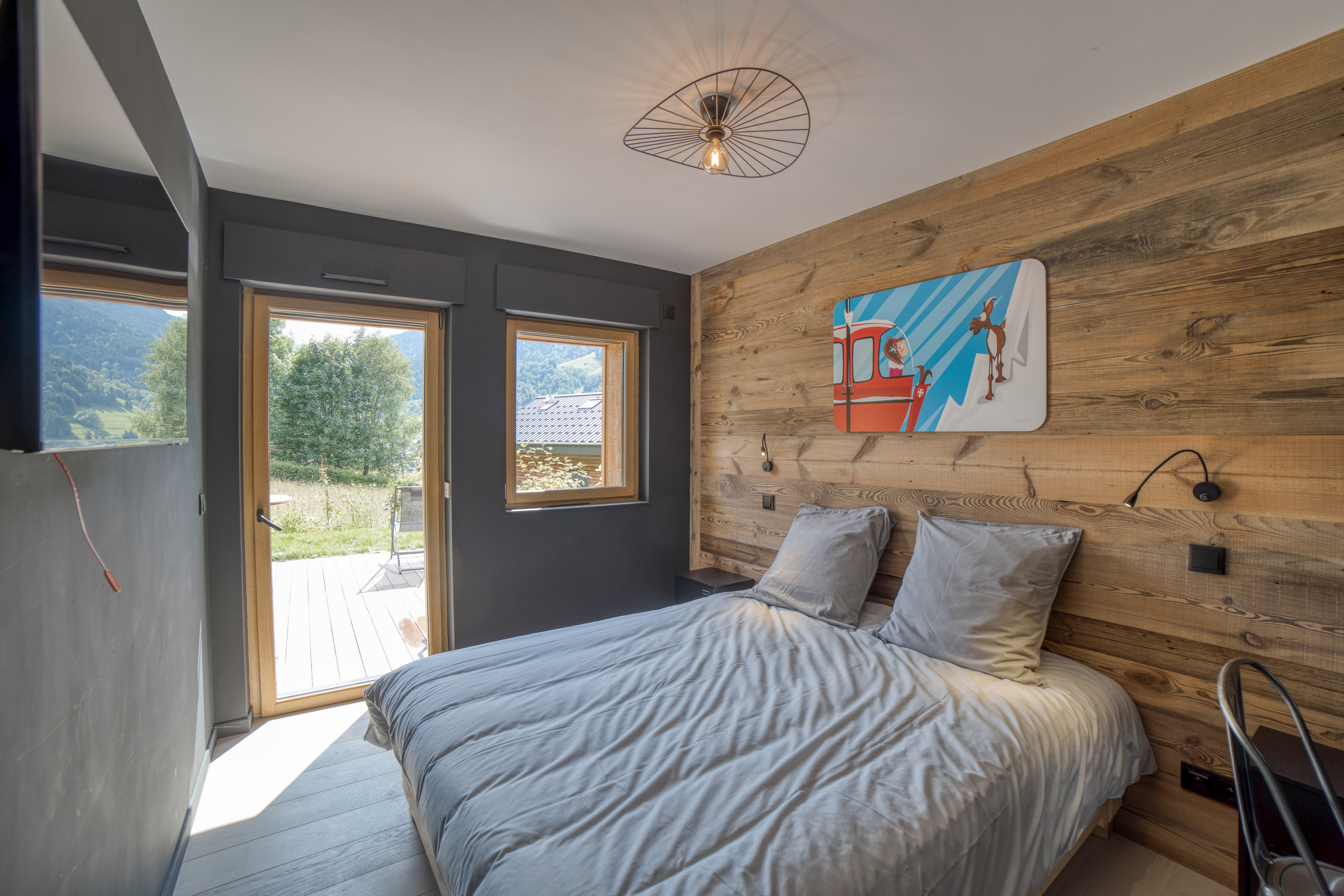 Chalet mitoyen d'exception de 200 m², idéal pour une grande famille ou un groupe d’amis. 14 voyageurs, 5 chambres, 5 salles de bain, jacuzzi avec vue montagne, grand séjour avec poêle à bois, table transformable en billard, terrasse, dortoir pour enfants, local à ski, nombreux équipements (cuisine équipée, lave-linge, sèche-linge, jeux, appareils à raclette/fondue, lit parapluie, etc.).