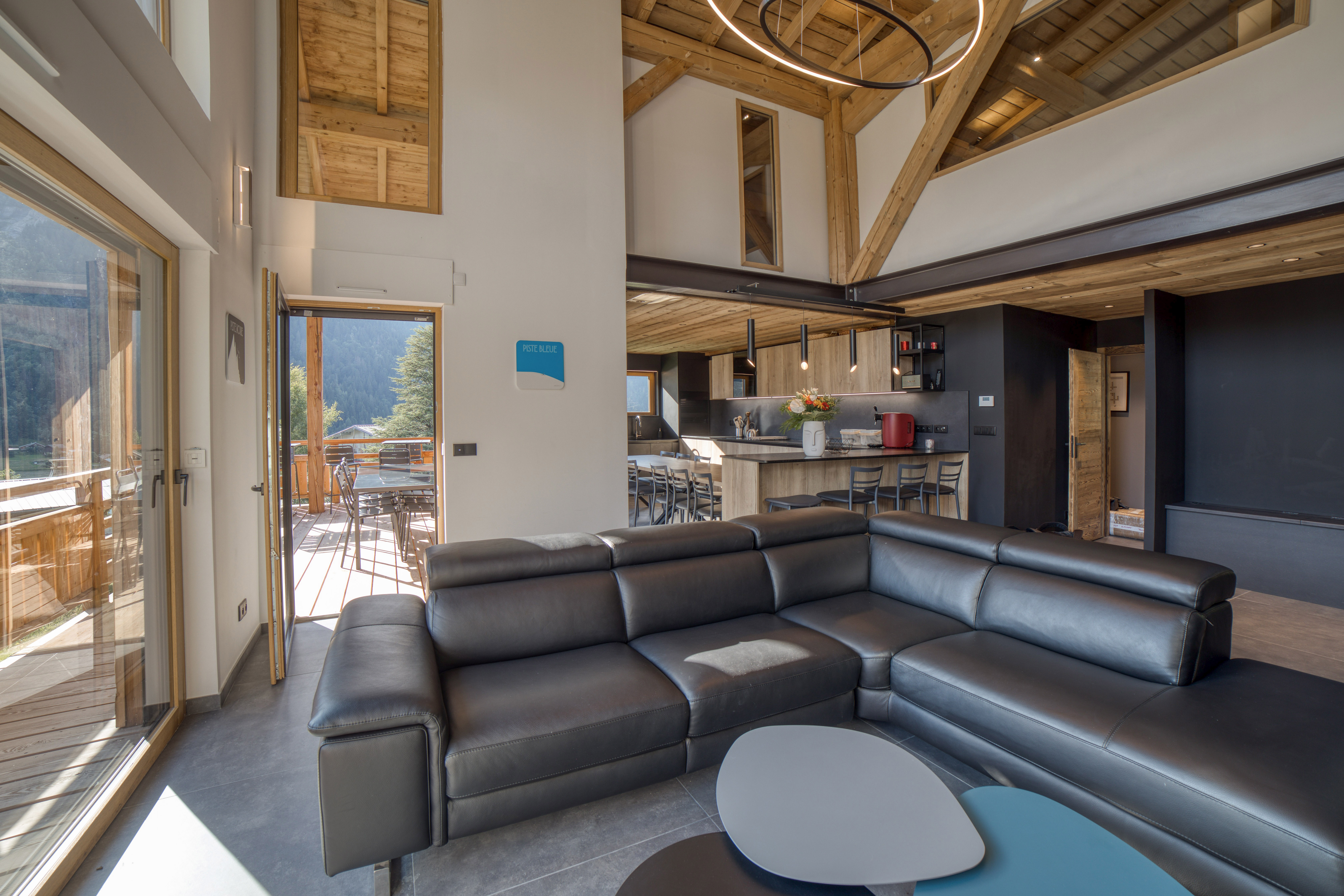 Chalet familial neuf de 200 m² aux Contamines-Montjoie, idéal pour 15 voyageurs, 5 chambres, jacuzzi et prestations haut de gamme.