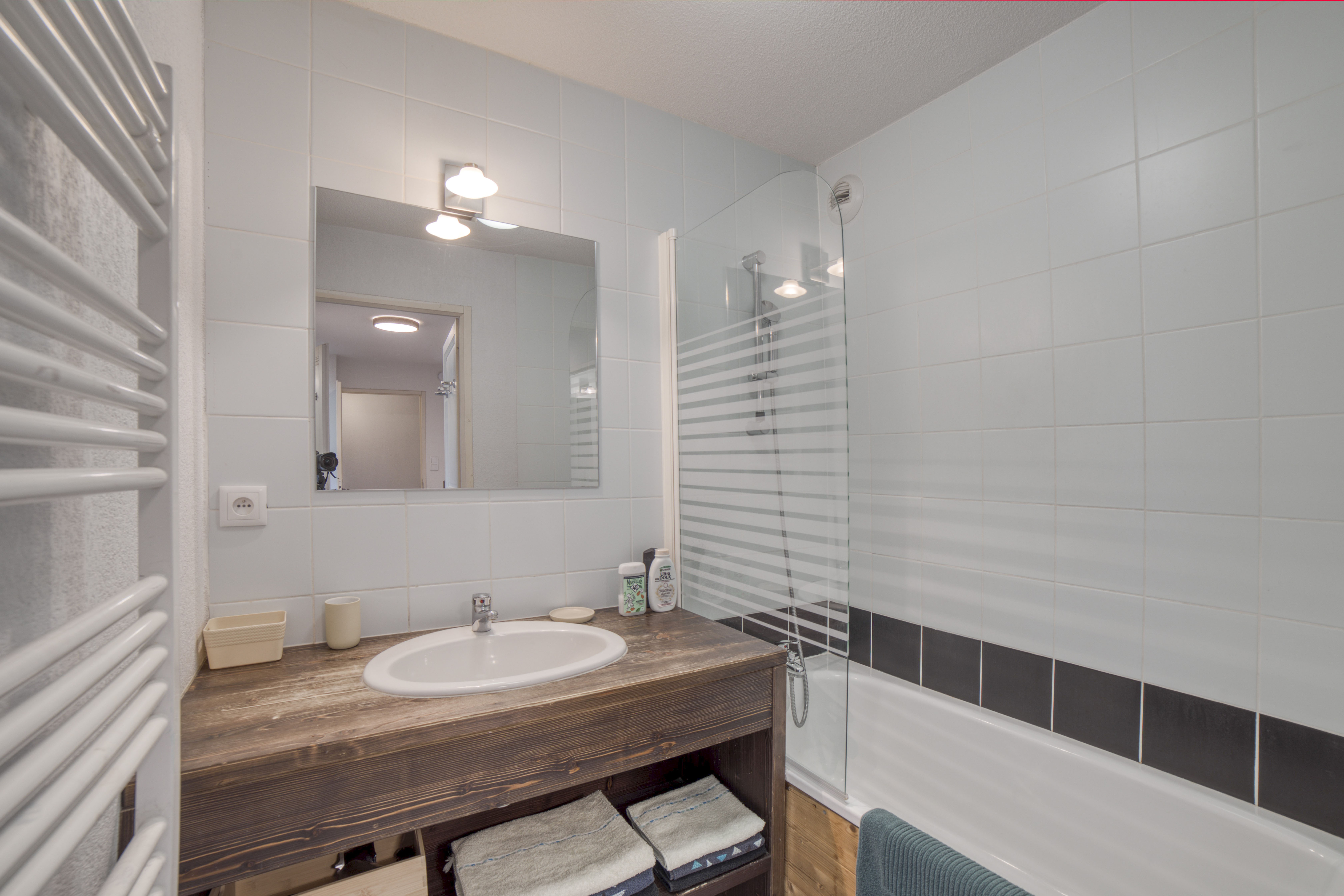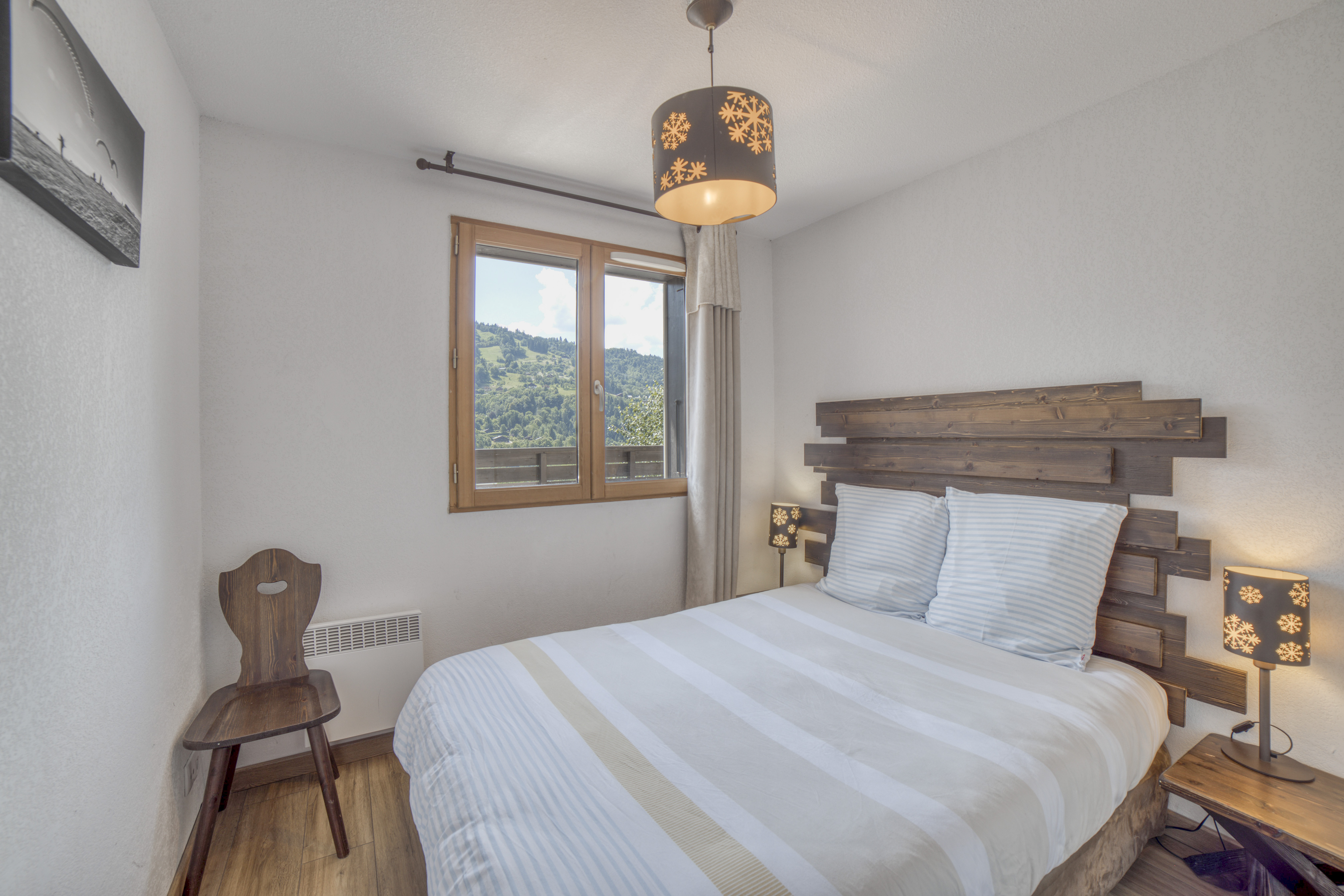 Appartement duplex de 65 m² situé dans une résidence calme et sécurisée, avec piscine intérieure chauffée et vue exceptionnelle sur les montagnes. Capacité 6 voyageurs, 3 chambres, 2 salles de bain. Niveau principal : salon et coin repas, cuisine équipée (four, plaques, réfrigérateur, lave-vaisselle, machine à café, etc.), terrasse avec jolie vue sur les montagnes, 1 chambre double (lit queen-size), WC indépendant. À l’étage : chambre avec lits superposés, chambre avec lits jumeaux, 1 salle d’eau (douche), 1 salle de bain (baignoire), WC indépendant. Équipements : cuisine équipée, TV, réfrigérateur, wifi, terrasse, sèche-cheveux, jeux de société, lit parapluie, appareils à raclette et à fondue, animaux acceptés, buanderie (lave-linge payant) dans la résidence, ascenseur. Accès : 1 place de parking en garage souterrain sécurisé + parkings extérieurs, casier à skis, piscine intérieure chauffée (périodes définies), espace billard, navette gratuite pour accès aux télécabines. Services de conciergerie disponibles.