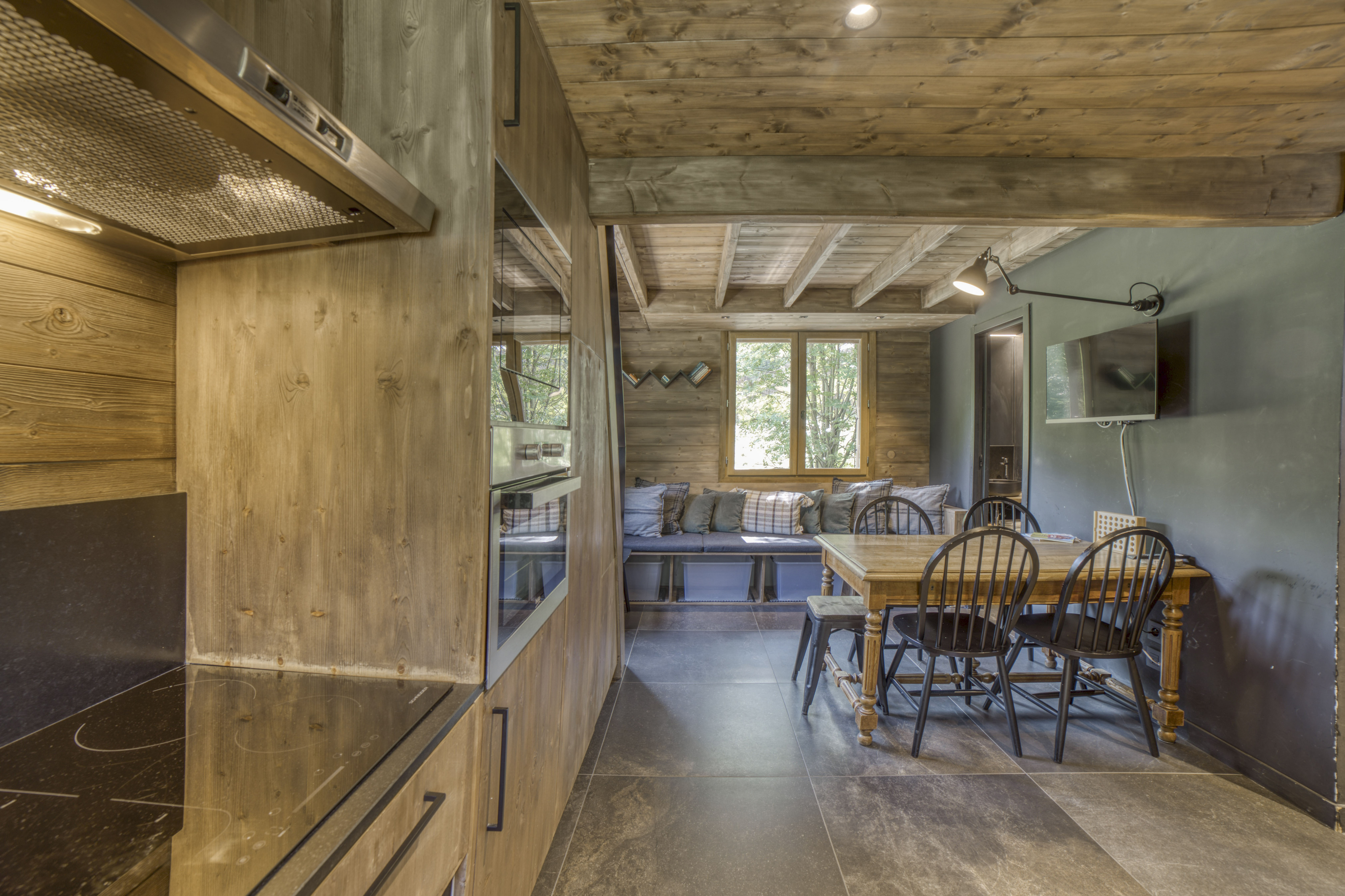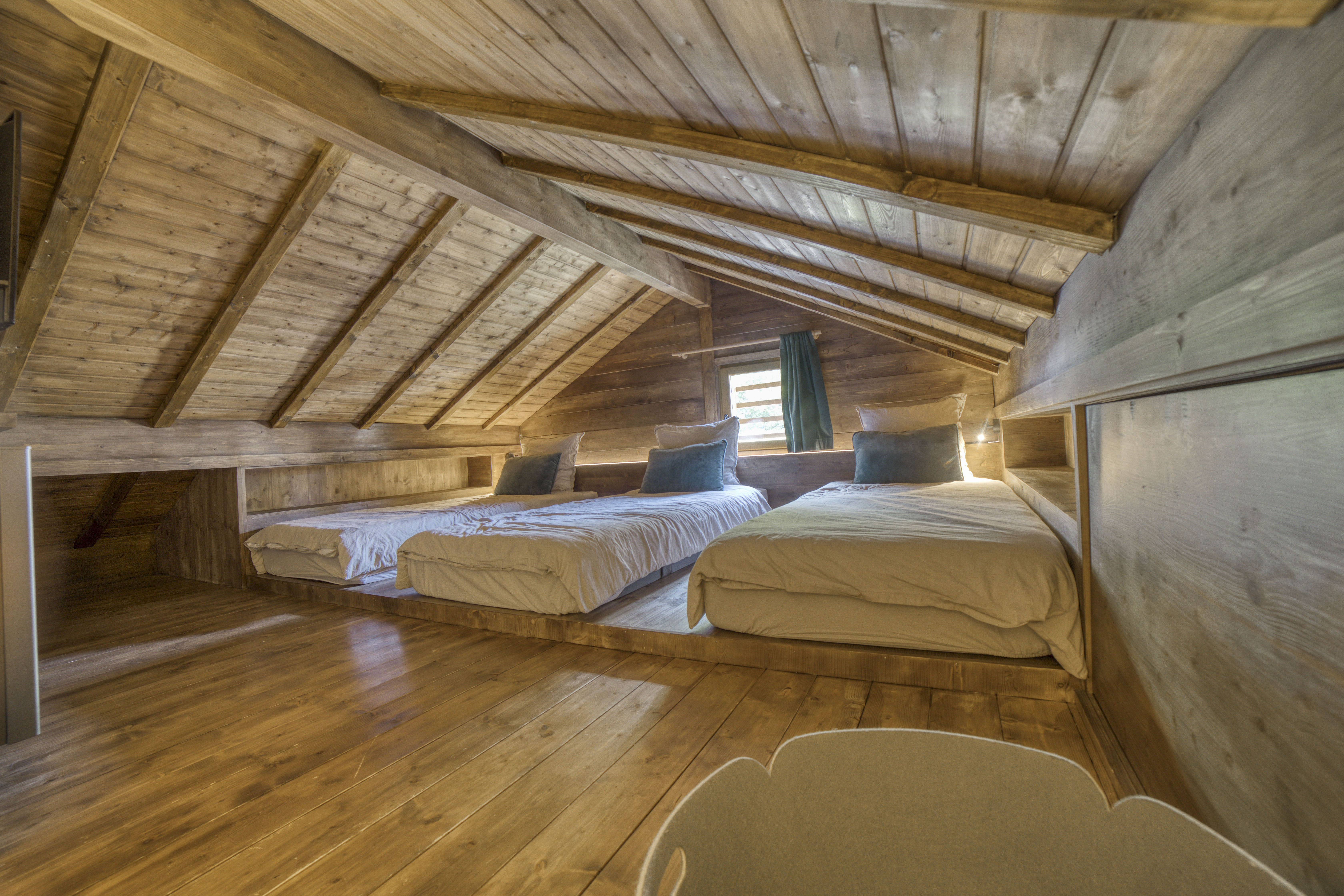 Rez-de-chaussée : salon, salle à manger, cuisine équipée (four, plaques, réfrigérateurs, lave-vaisselle, machine à café, etc.), 1 chambre master avec salle de bain privative, 1 salle de douche, 1 WC indépendant. À l’étage : 1 chambre triple avec TV. Extérieurs : terrasse avec mobilier et transats, barbecue (printemps/été), jardin, 2 places de parking privées. Nombreux équipements : cuisine équipée, TV, réfrigérateur, wifi, lave-linge, sèche-cheveux, appareils à raclette, jardin/terrasse, animaux acceptés.