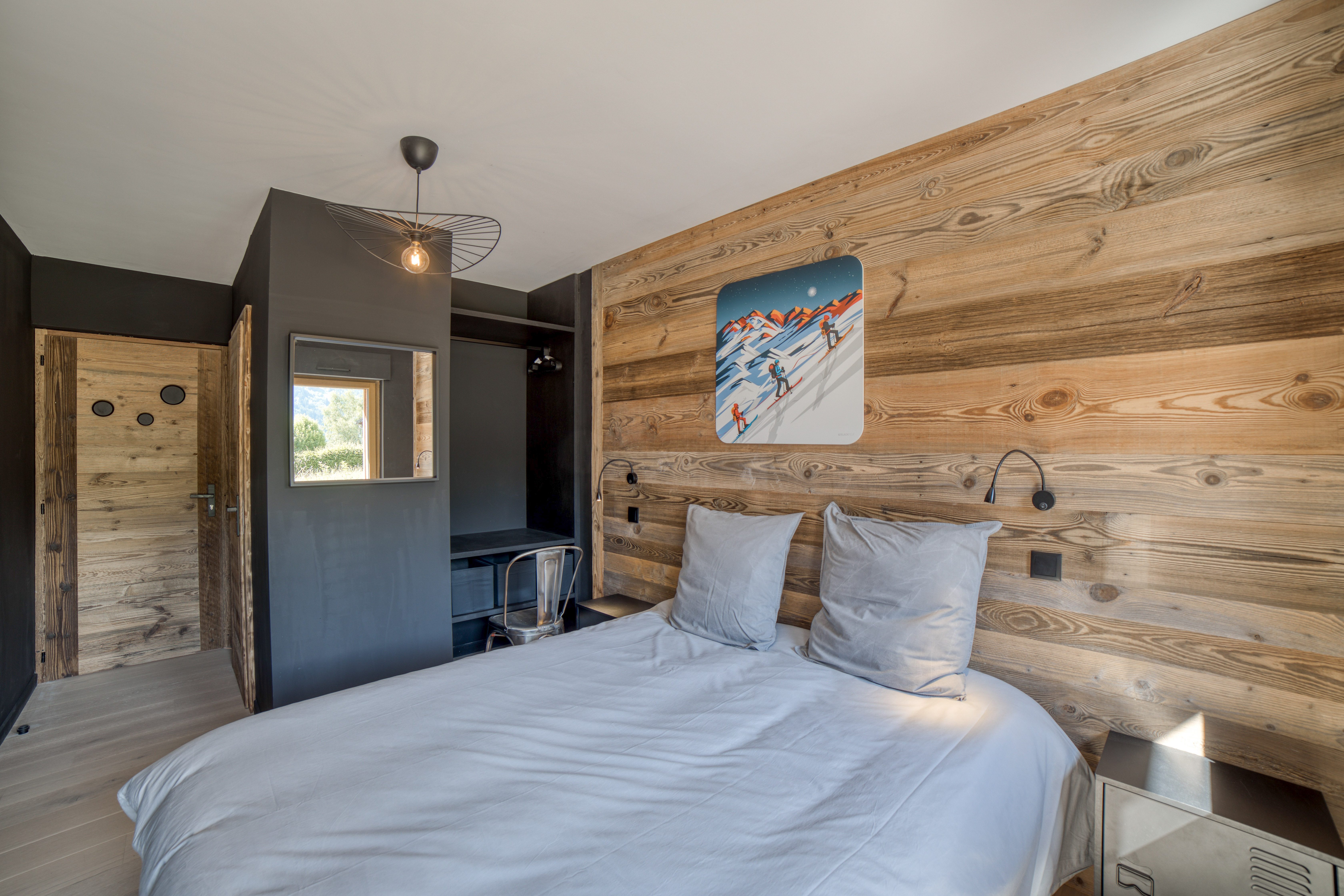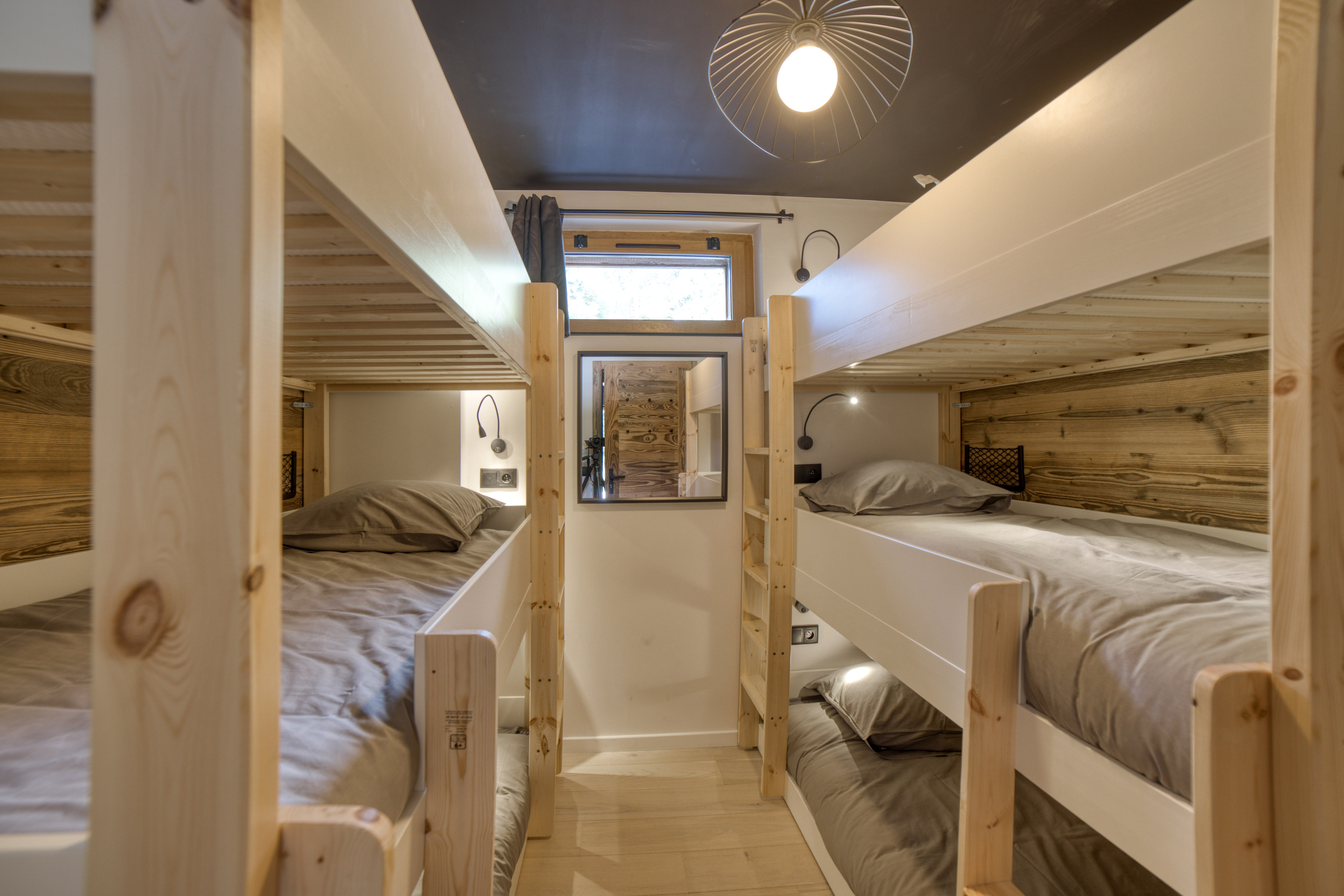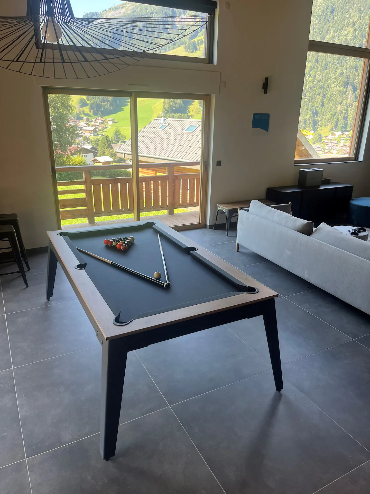 Chalet mitoyen d'exception de 200 m², idéal pour une grande famille ou un groupe d’amis. 14 voyageurs, 5 chambres, 5 salles de bain, jacuzzi avec vue montagne, grand séjour avec poêle à bois, table transformable en billard, terrasse, dortoir pour enfants, local à ski, nombreux équipements (cuisine équipée, lave-linge, sèche-linge, jeux, appareils à raclette/fondue, lit parapluie, etc.).