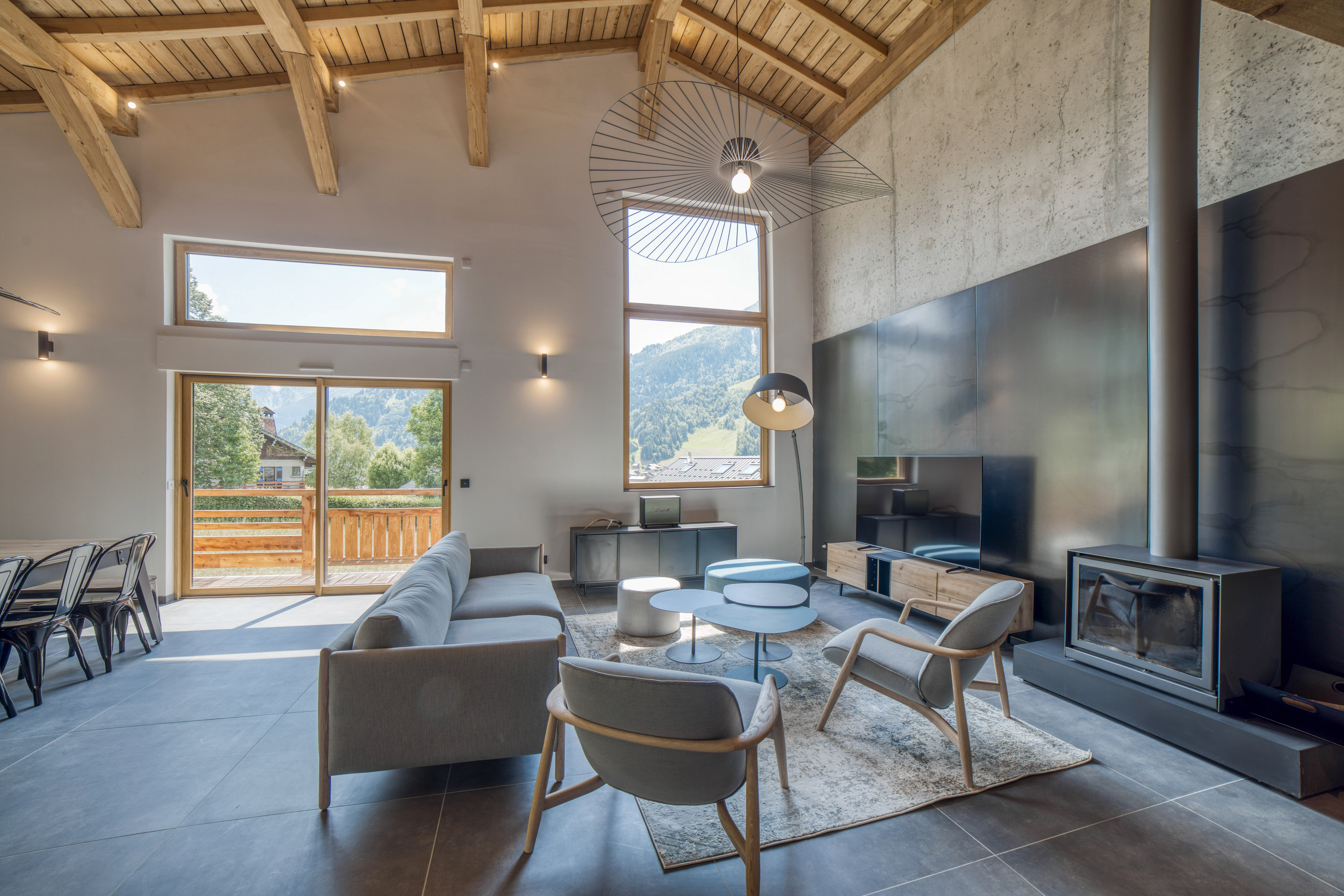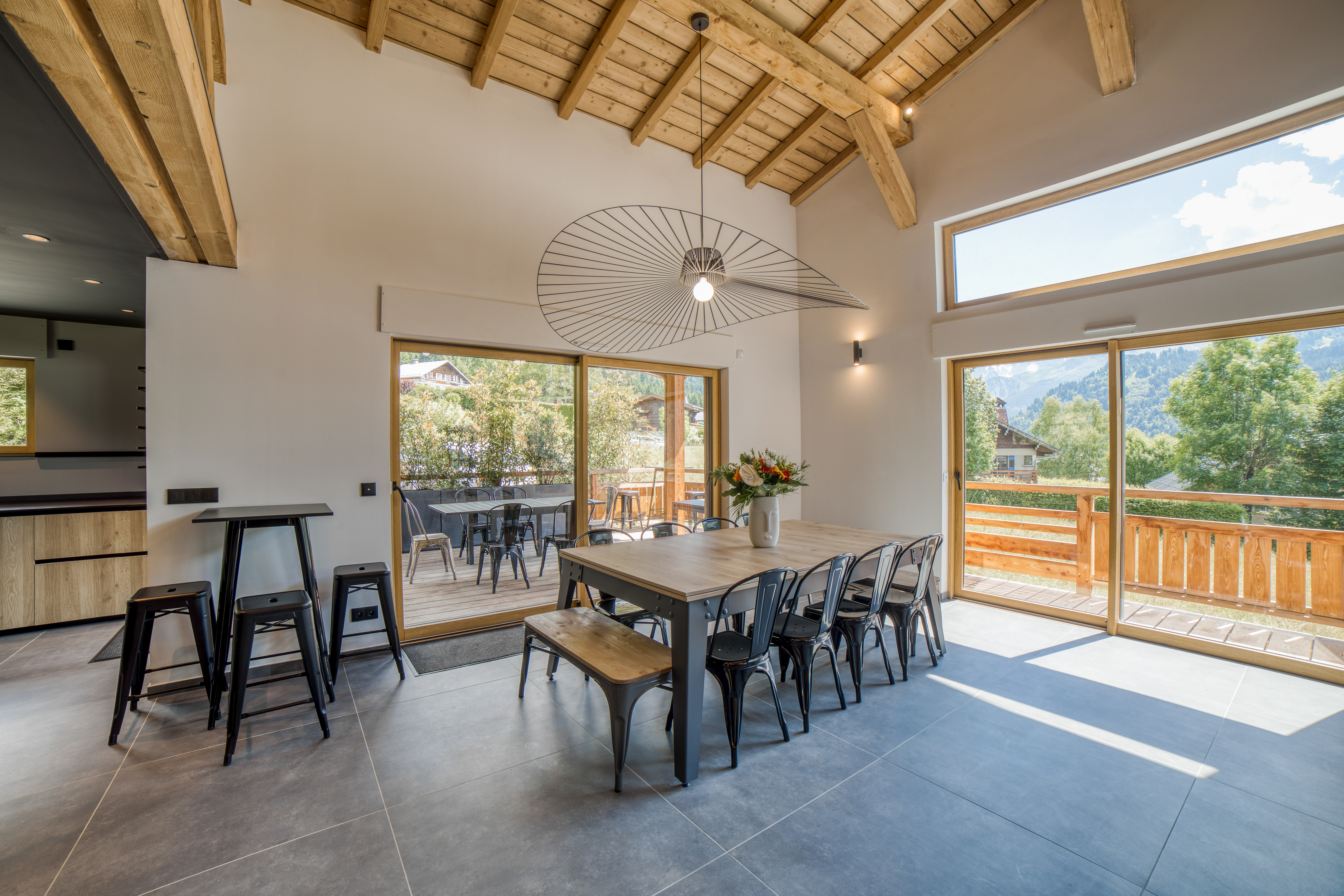 Chalet mitoyen d'exception de 200 m² aux Contamines-Montjoie, idéal pour 14 voyageurs, 5 chambres et jacuzzi avec vue panoramique.