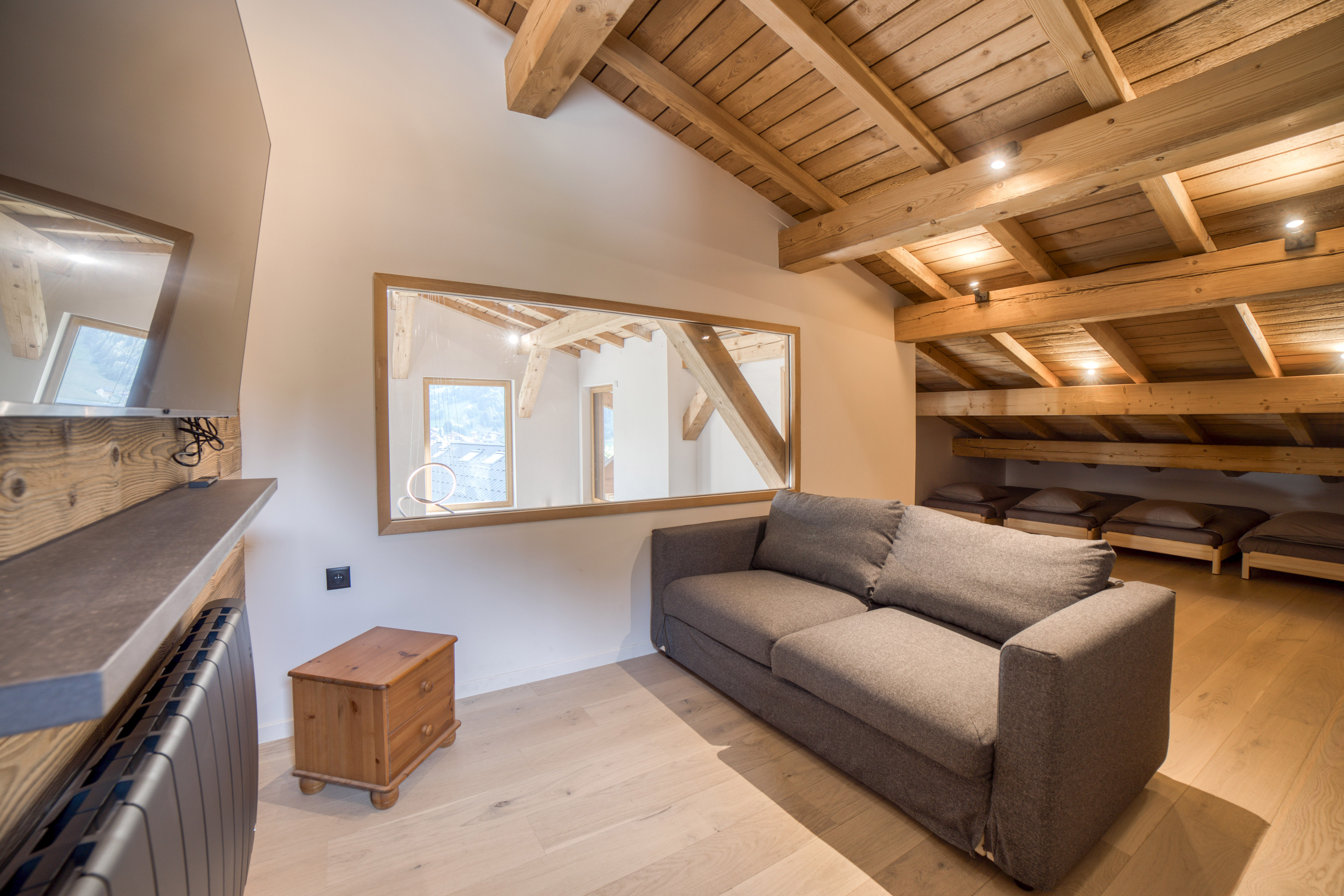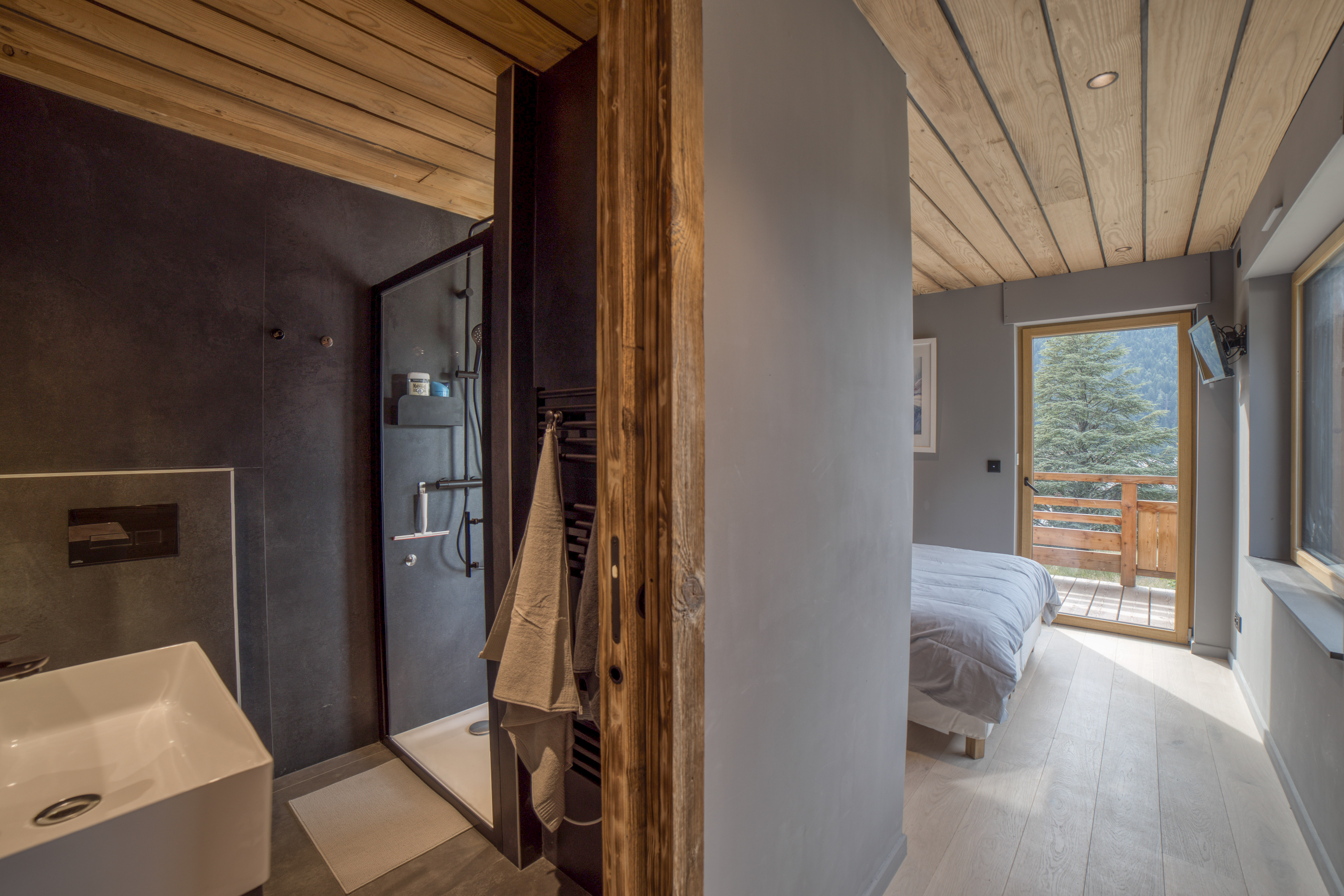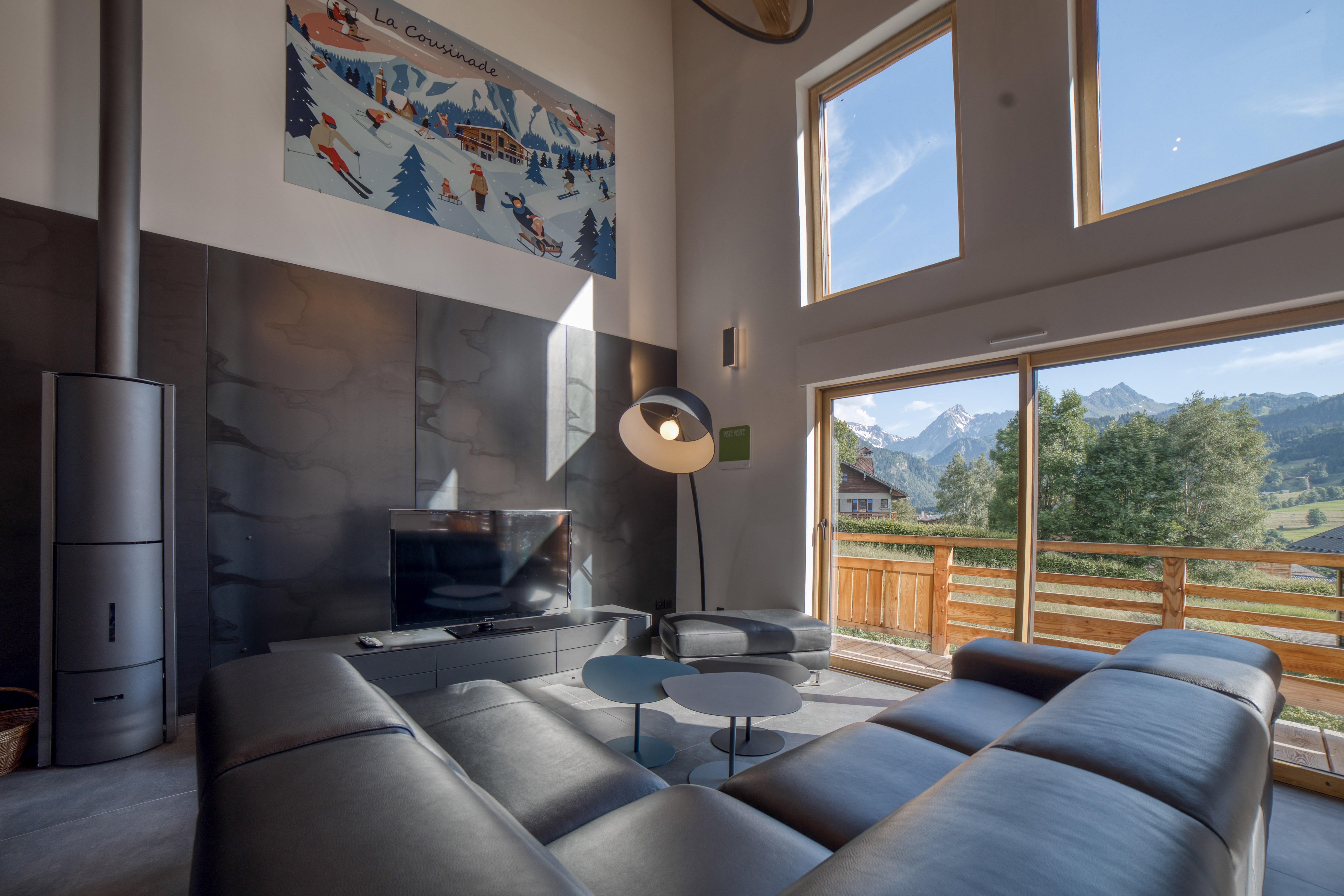 Chalet familial neuf de 200 m² aux Contamines-Montjoie, idéal pour 15 voyageurs, 5 chambres, jacuzzi et prestations haut de gamme.