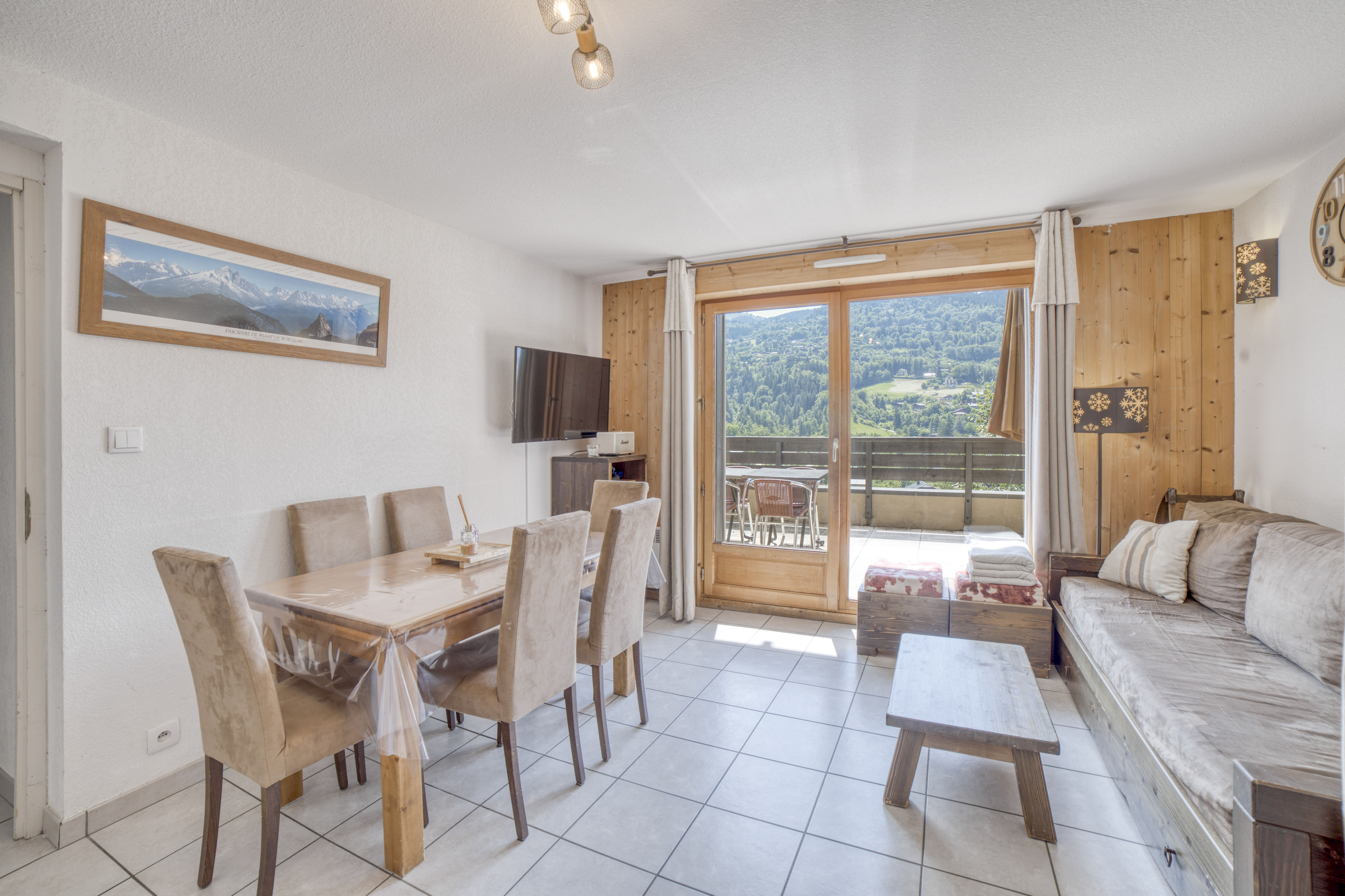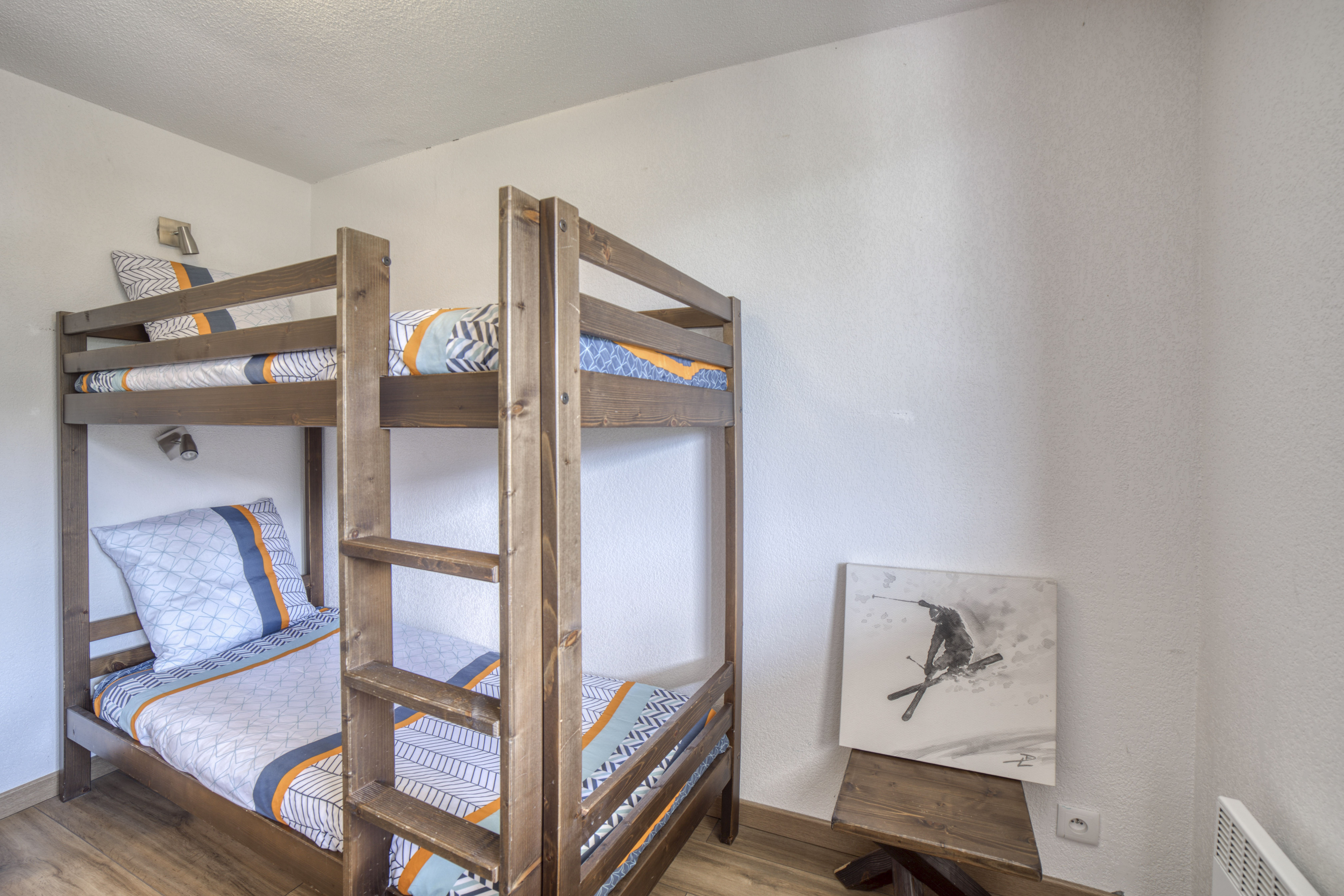 Duplex familial de 65 m² à Saint-Gervais-les-Bains, résidence calme avec piscine intérieure chauffée, 6 voyageurs, 3 chambres et 2 salles de bain.