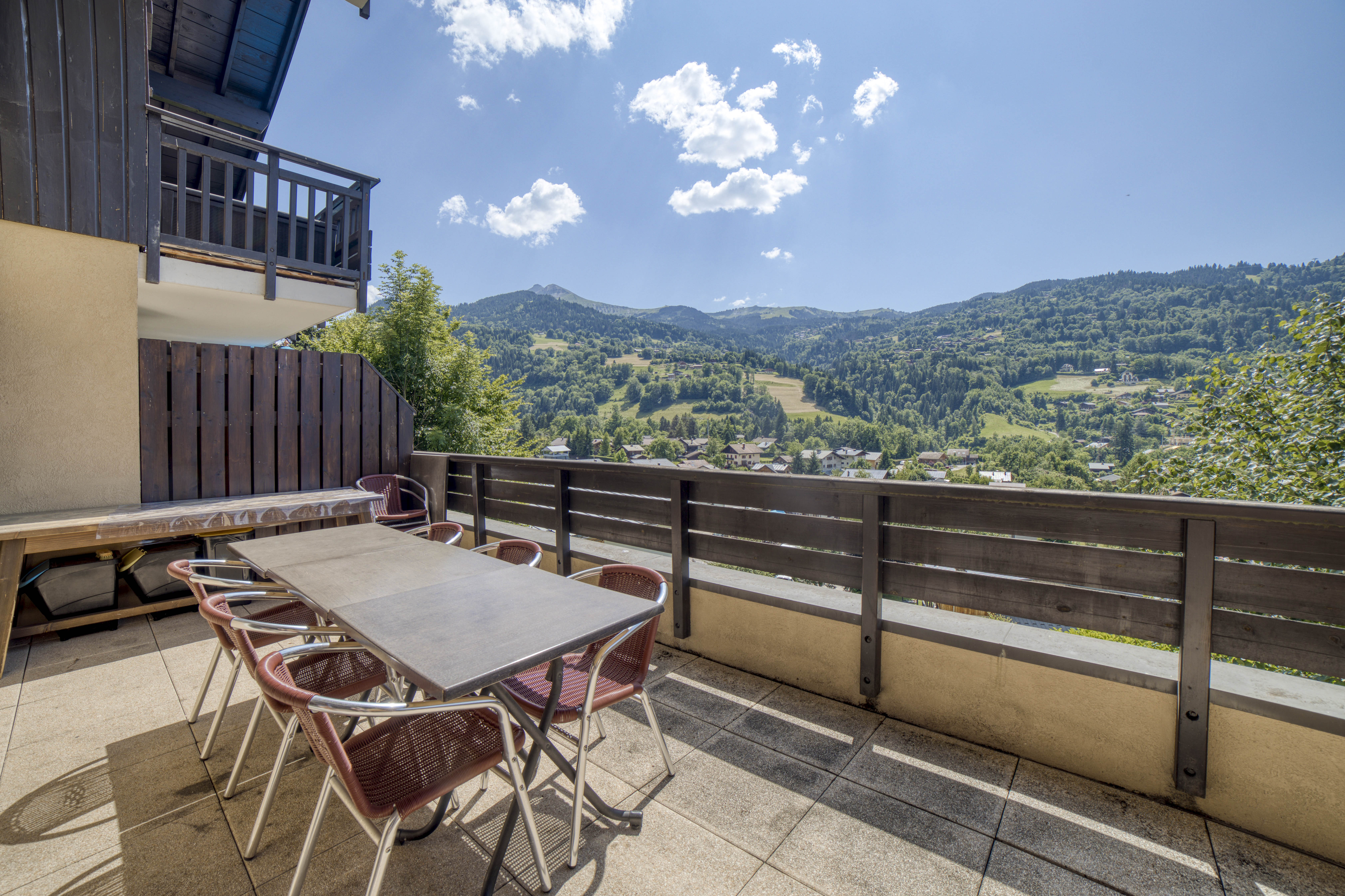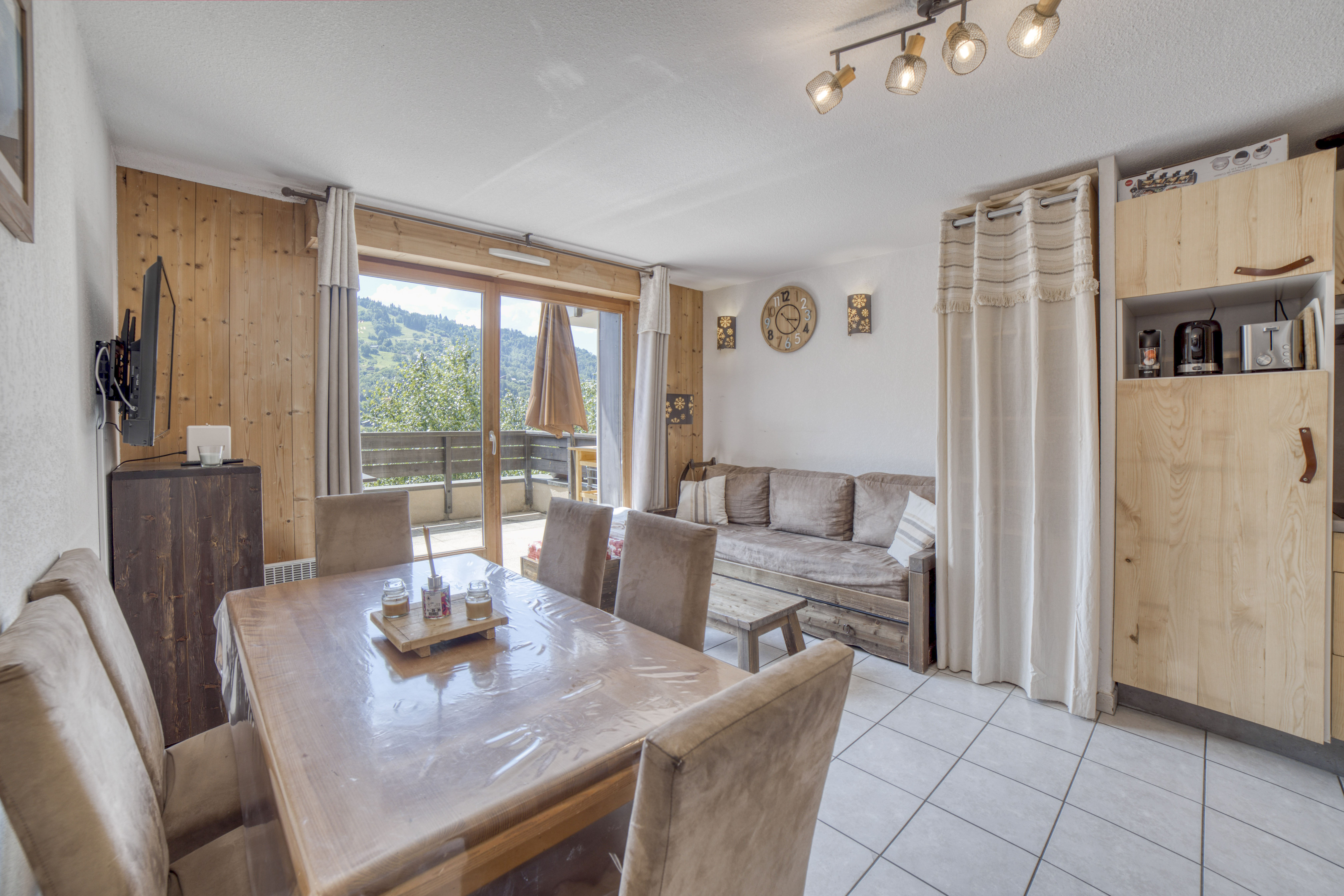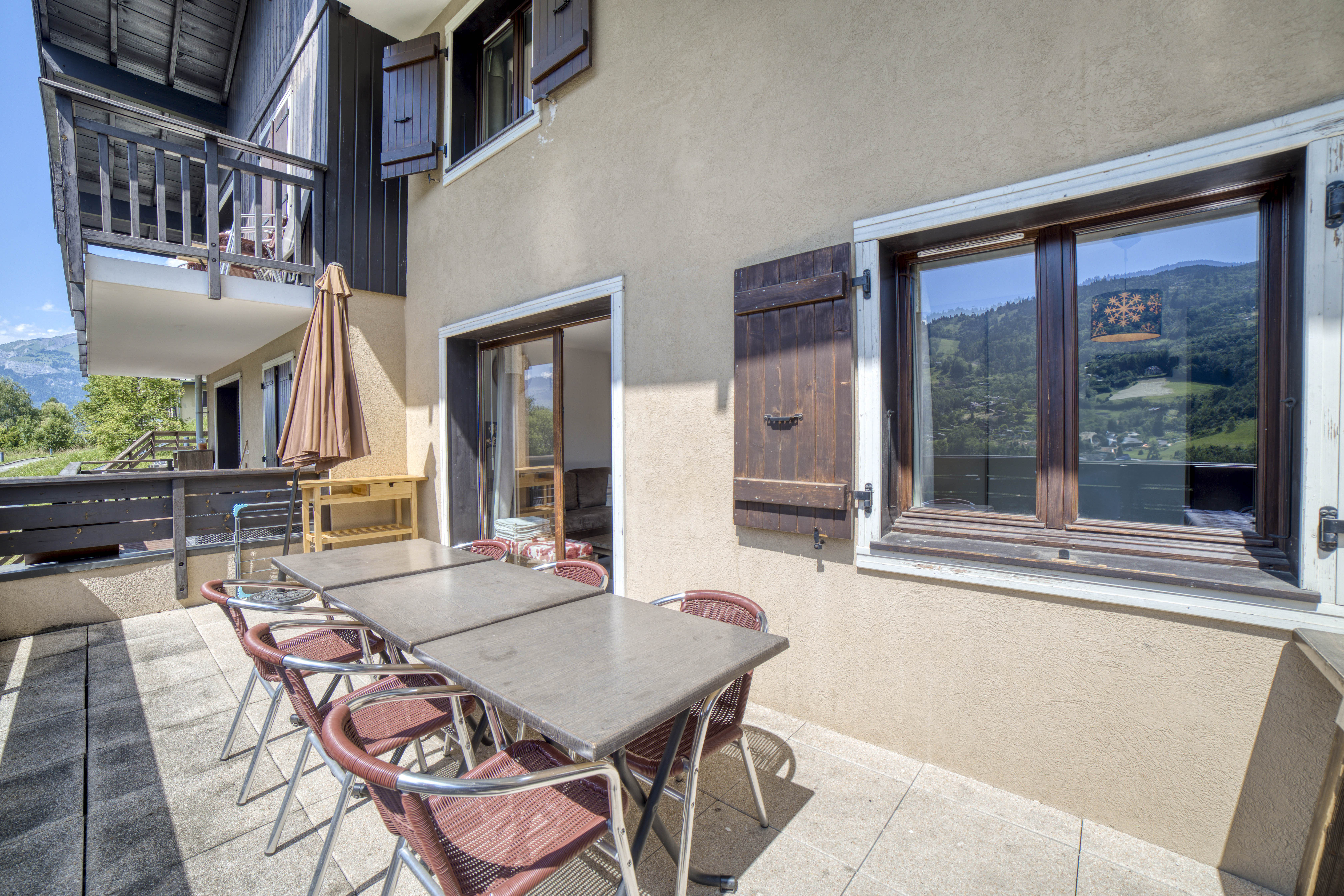 Appartement duplex de 65 m² situé dans une résidence calme et sécurisée, avec piscine intérieure chauffée et vue exceptionnelle sur les montagnes. Capacité 6 voyageurs, 3 chambres, 2 salles de bain. Niveau principal : salon et coin repas, cuisine équipée (four, plaques, réfrigérateur, lave-vaisselle, machine à café, etc.), terrasse avec jolie vue sur les montagnes, 1 chambre double (lit queen-size), WC indépendant. À l’étage : chambre avec lits superposés, chambre avec lits jumeaux, 1 salle d’eau (douche), 1 salle de bain (baignoire), WC indépendant. Équipements : cuisine équipée, TV, réfrigérateur, wifi, terrasse, sèche-cheveux, jeux de société, lit parapluie, appareils à raclette et à fondue, animaux acceptés, buanderie (lave-linge payant) dans la résidence, ascenseur. Accès : 1 place de parking en garage souterrain sécurisé + parkings extérieurs, casier à skis, piscine intérieure chauffée (périodes définies), espace billard, navette gratuite pour accès aux télécabines. Services de conciergerie disponibles.